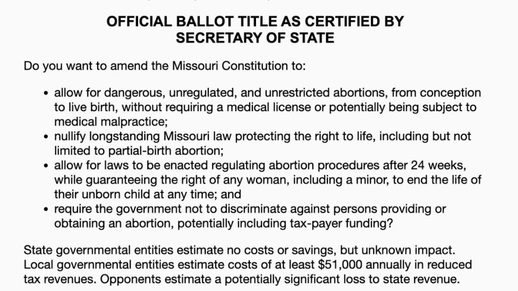 In the summary written by his office for the 11 different abortion rights initiative petition proposals, Ashcroft says the measures will allow for “dangerous, unregulated abortions” without requiring a medical license. If the summary language remains unchanged, things like sample ballots would show voters only Ashcroft’s summary, not the full text of the amendment.
