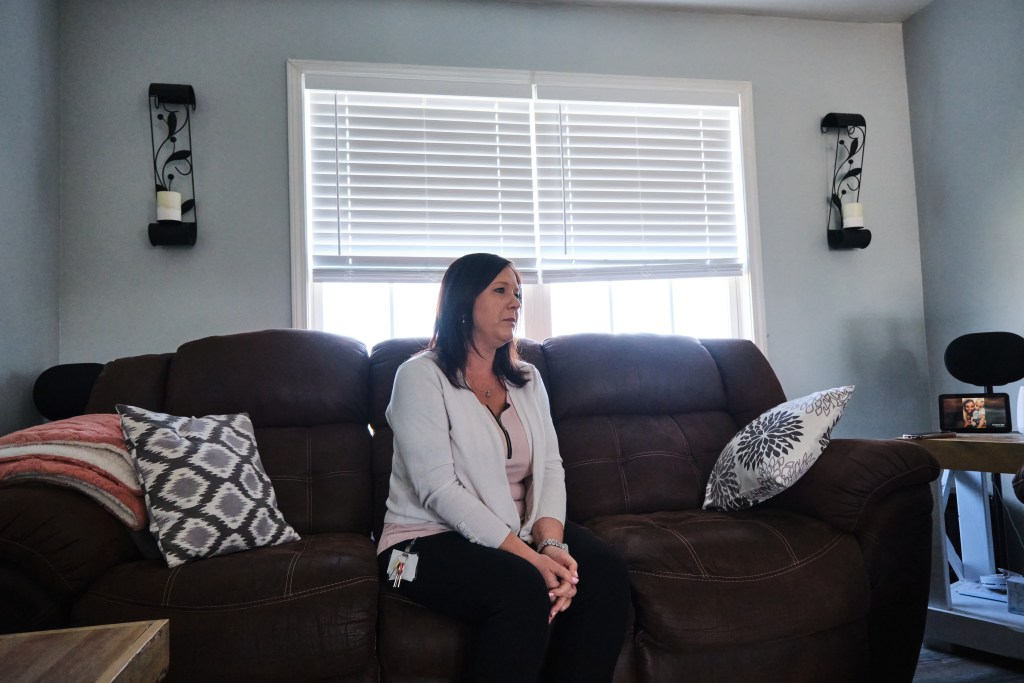 Mindy Mathes in her living room. Credit: Dominick Williams/The Beacon