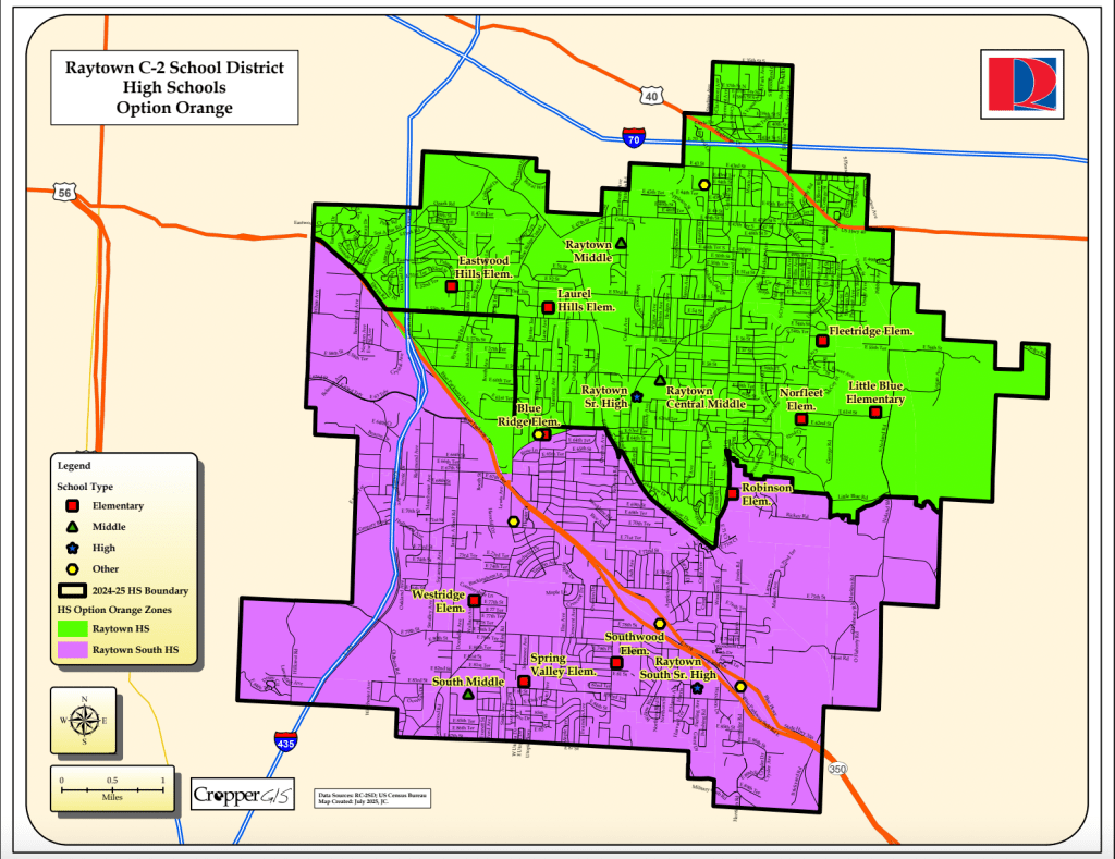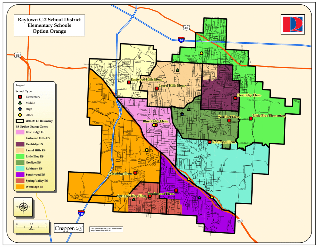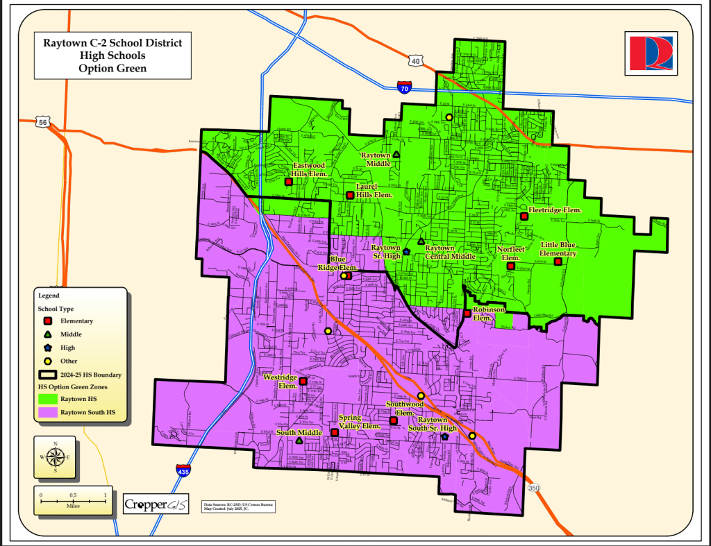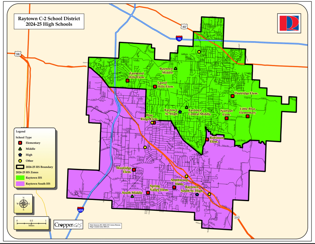 Due to boundary changes, about 100 elementary students from Fleetridge, Southwood and Spring Valley would switch to Laurel Hills, Spring Valley and Westridge, respectively. About 60 Raytown Central Middle students would switch to Raytown Middle. And 65 Raytown South students would switch to Raytown High School.