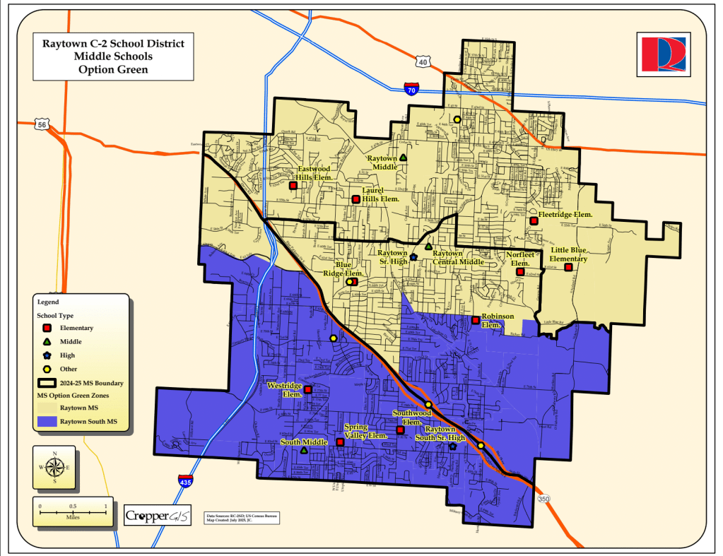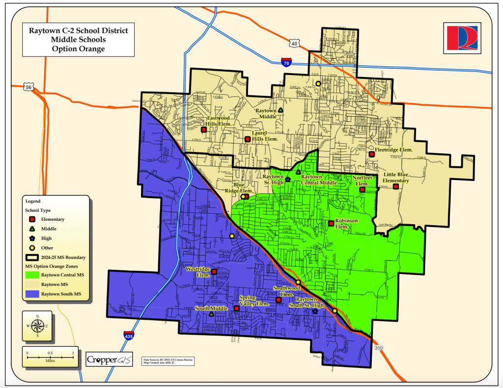 About 60% of the district’s seventh and eighth graders would attend Raytown Middle School. The rest would attend Raytown South Middle School.